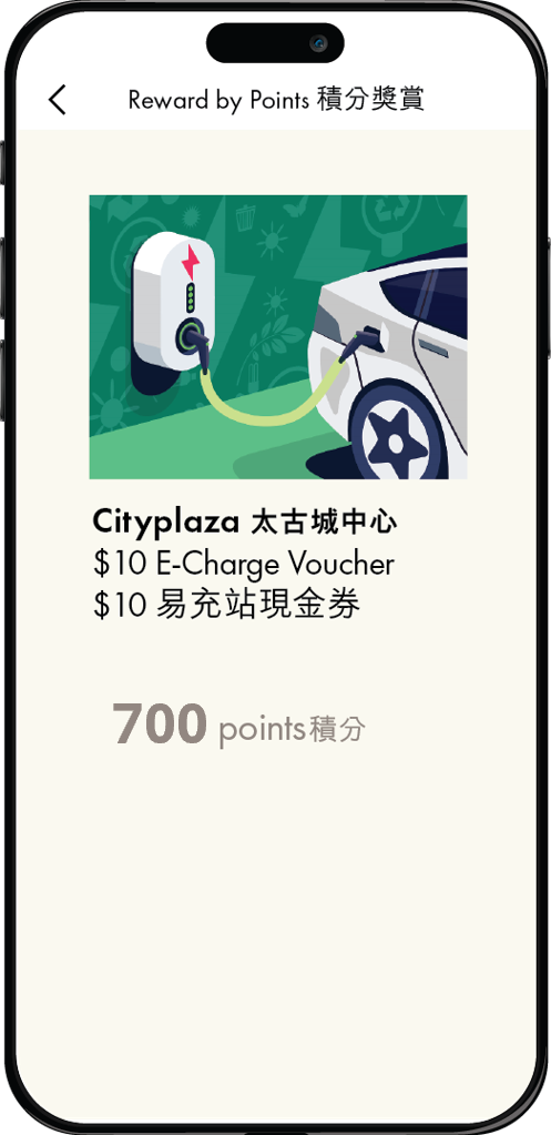 | 700 LIVE+ Points | HK$10 E-Charge (HK) Charging Voucher at Cityplaza |