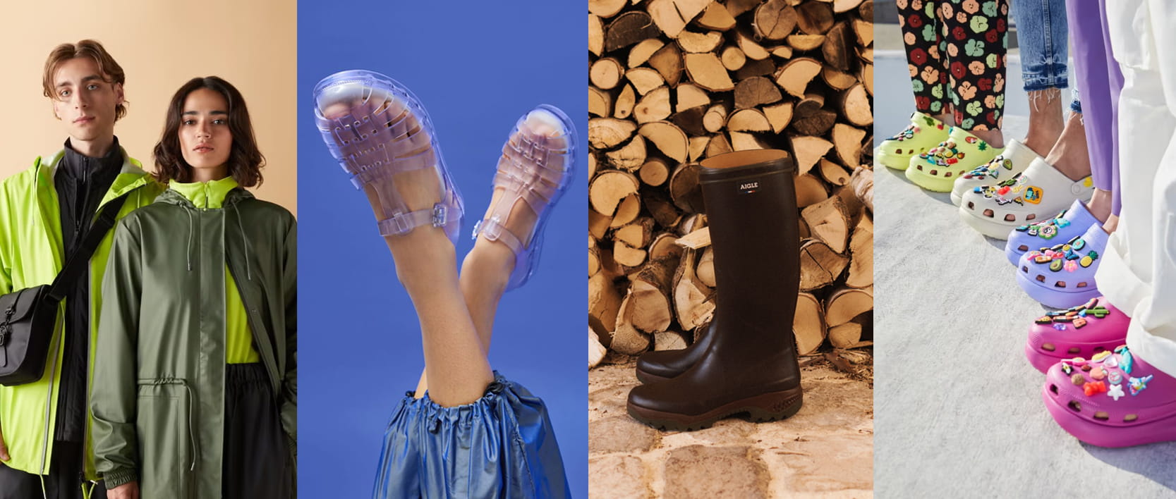 Keep your look fresh even on soggy days with trendy waterproof jackets and bags from Rains, available in a variety of colours and minimalist styles. Colourful transparent jelly shoes by Brazilian brand Melissa at MDreams are a popular footwear choice you’ll spot many Korean celebrities sporting these days, while classic ‘wellies’ rain boots from century-old brand Aigle remain a timeless favourite that wears well with French fashion. If Y2K is your look, check out easily customizable crocs, the plastic clogs that you can decorate with quirky charms to match the latest Gen Z trends!