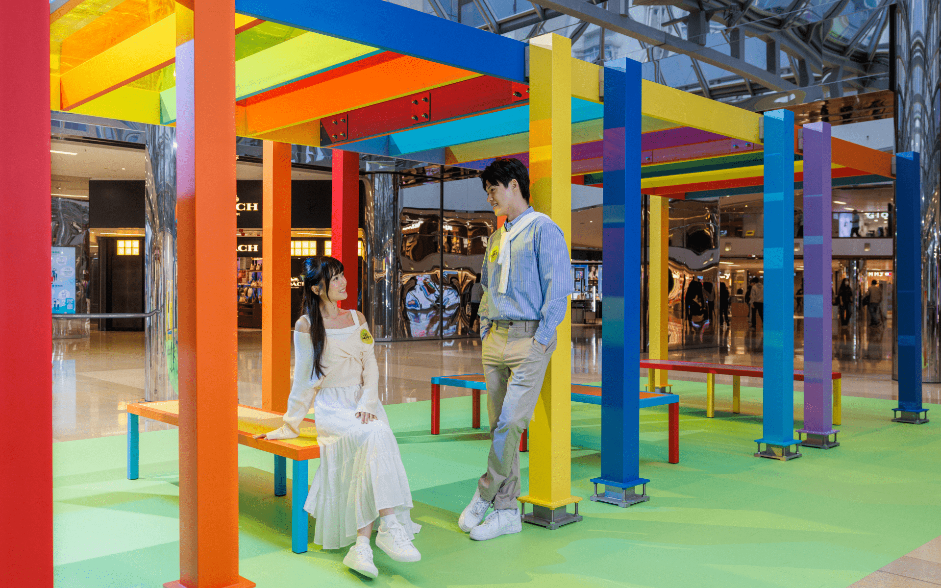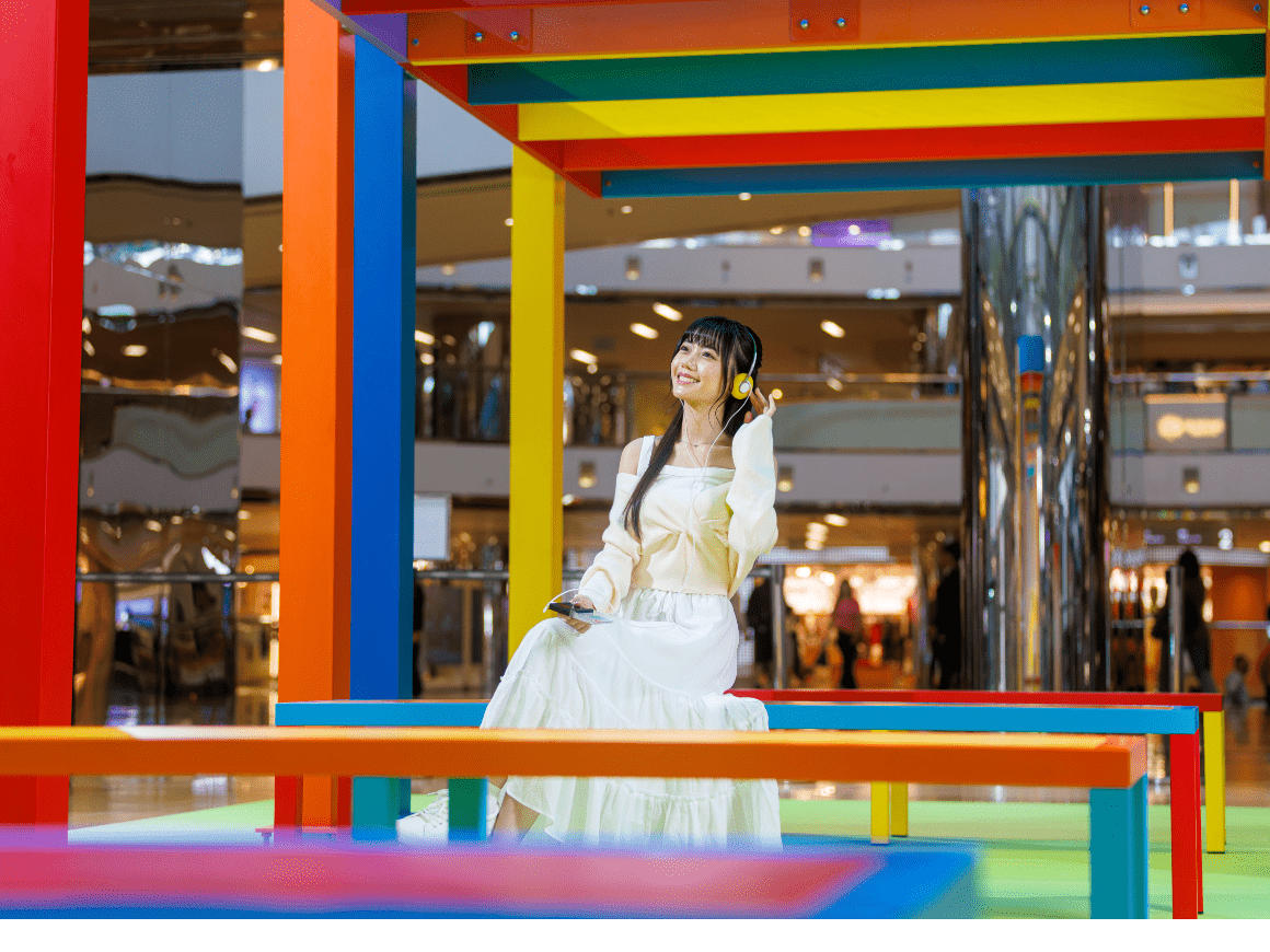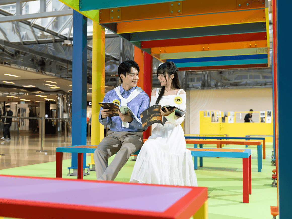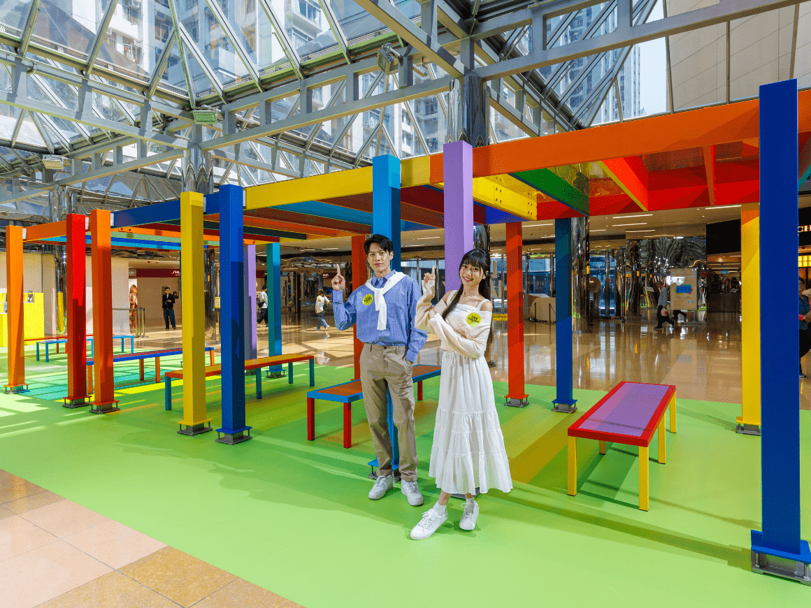 Amid Cityplaza’s everyday bustle, “Perpetual Discussion Platforms”, a major work by renowned British artist Liam Gillick luminous palette gently opens a “third place”: “LET’S SEE”, where conversation and cultural exchange can unfold with ease – gathering unhurried moments within a fast-moving rhythm. Beneath the glass canopy of Cityplaza, the large-scale modular elevated platforms with coloured transparent canopies and benches—unfolds a vivid play of light and hues as sunlight refracts through it, embodying the spirit of multicultural convergence and intellectual exchange. Cityplaza invites passersby to slow down their pace and converse within the artistic space of effervescent light and shadows at the CITY ART LOUNGE, indulging in moments of serenity.LET’S INSPIRE