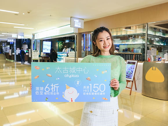 During the promotion period, spend the designated amount via electronic payment# at designated Cityplaza dining outlets* and become a LIVE+ member@ to redeem the following spending rewards^: