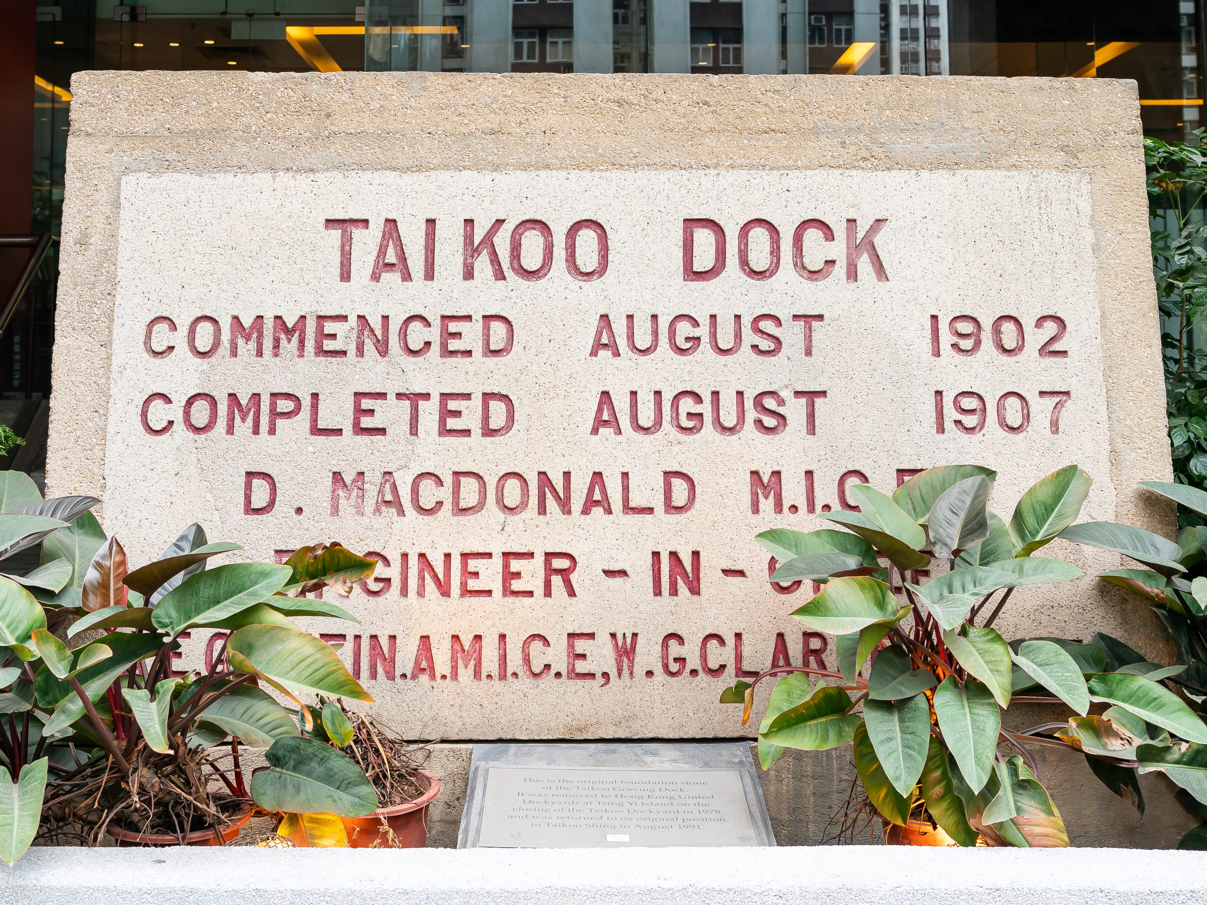 太古船塢 | 為太古城的前身。時至今日,船塢不復存在,然而其紀念碑仍在太古城中心前展示,見證太古城區內發展。