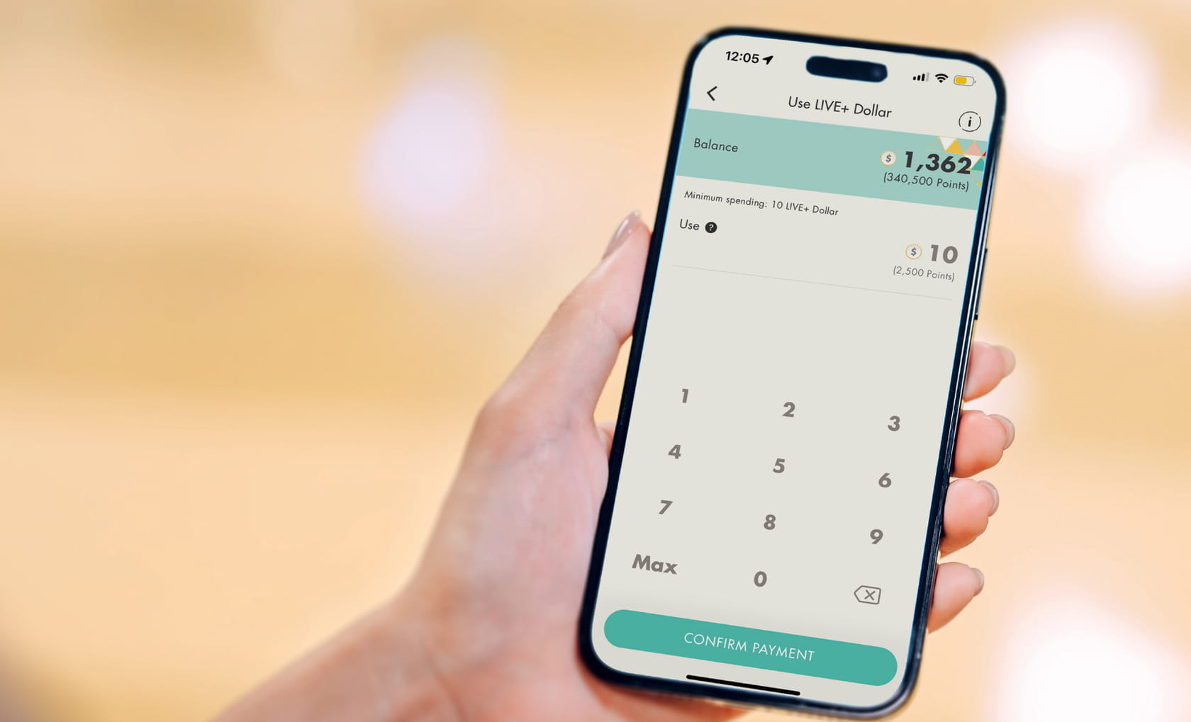 LIVE+會員可以250積分兌換1 LIVE+ Dollar,而每1 LIVE+ Dollar可當作HK$1於參與商戶使用!