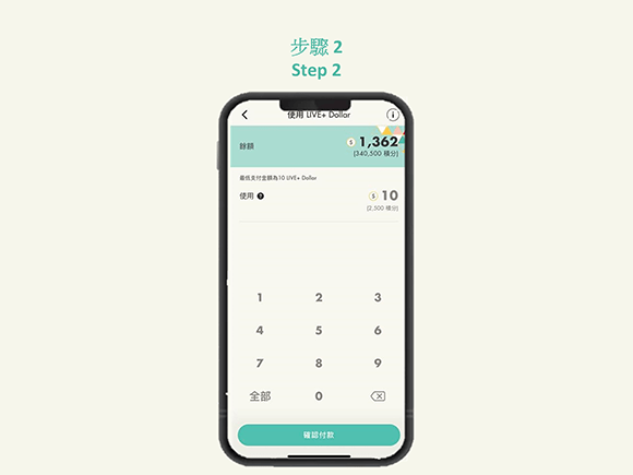 步驟 2 : 輸入所需兌換LIVE+ Dollar面額*並按「確認付款」。
