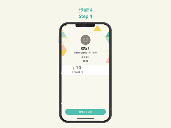 步驟 4 : 顯示「兌換成功」頁面即表示LIVE+ Dollar兌換完成#。