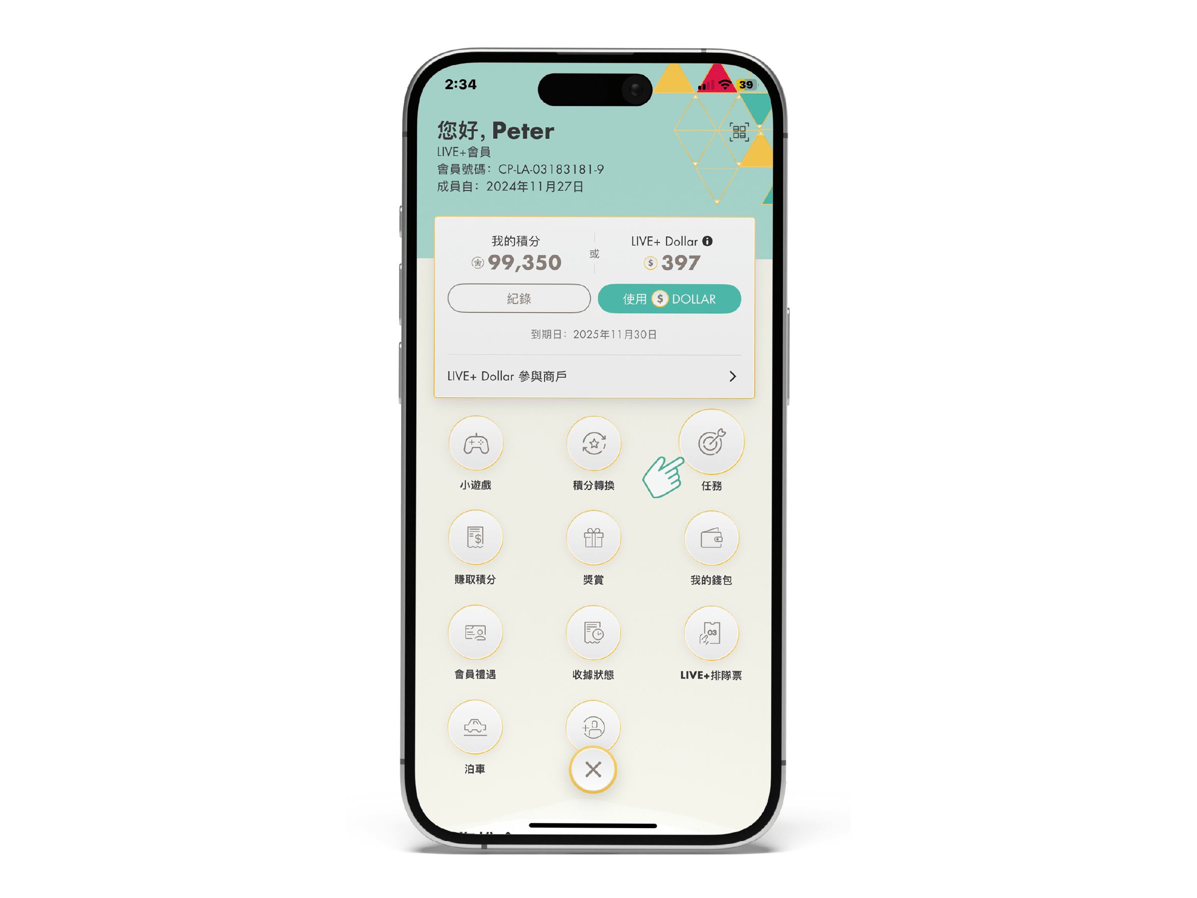 步驟1:到訪TAIKOO+流動應用程式的「任務」頁面